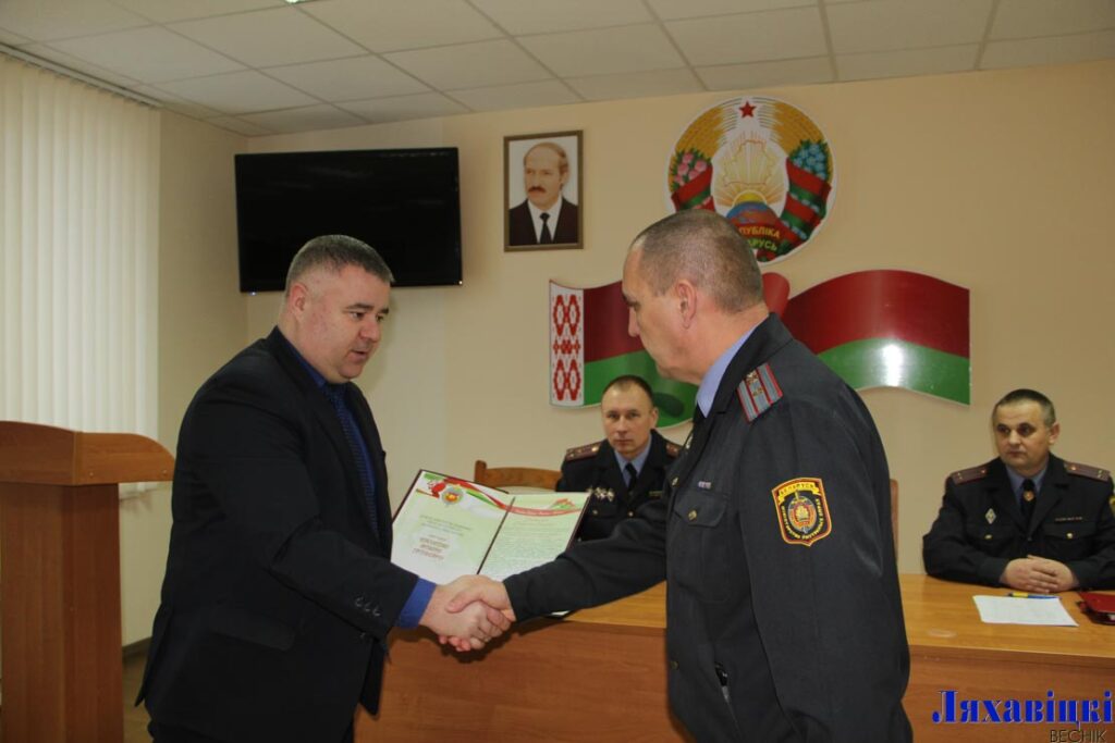 Нового первого заместителя начальника Ляховичского РОВД сегодня коллективу представил заместитель начальника УВД Брестского облисполкома – начальник милиции общественной безопасности полковник милиции Александр Кисель.