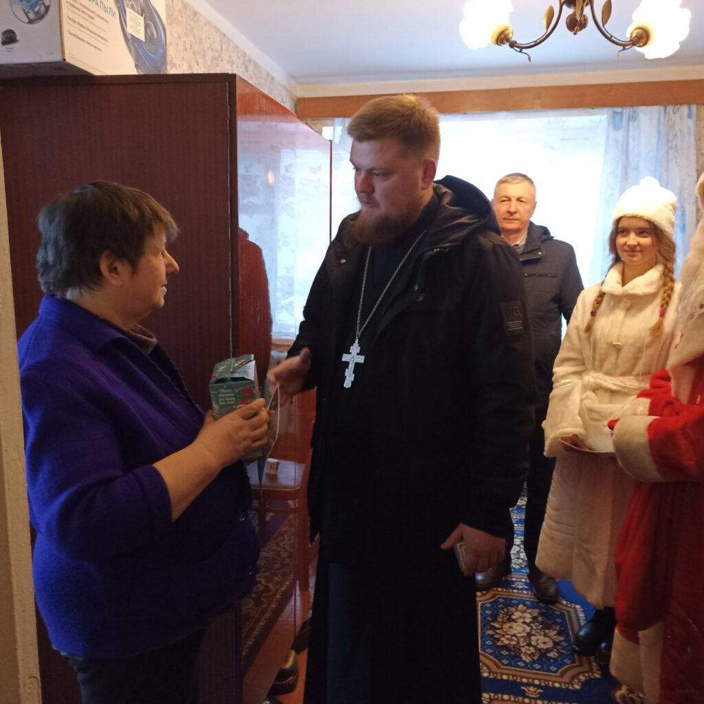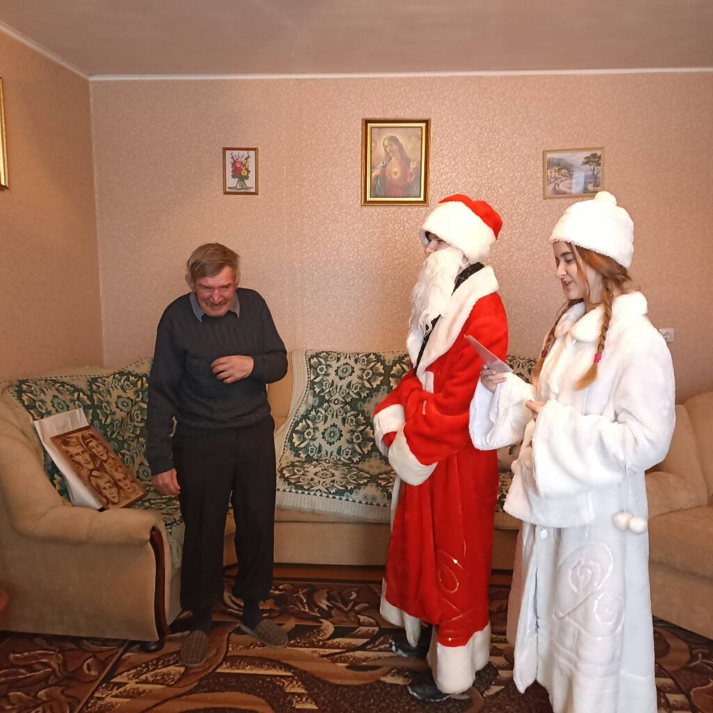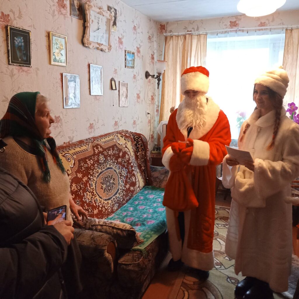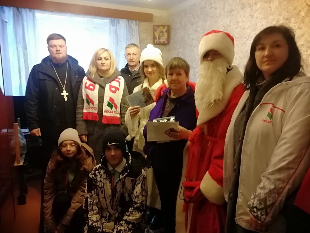 Гости искренне и тепло пожелали пожилым землякам здоровья и долголетия, а Дед Мороз и Снегурочка вручили от районной организации «Белая Русь» новогодние подарки.
