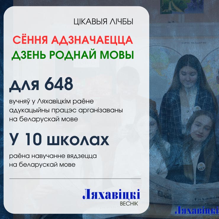Навіны Сёння адзначаецца Дзень роднай мовы. Для якой колькасці навучэнцаў у Ляхавіцкім раёне адукацыйны працэс праходзіць на беларускай мове? 21/02/2023 84 redakcyja
