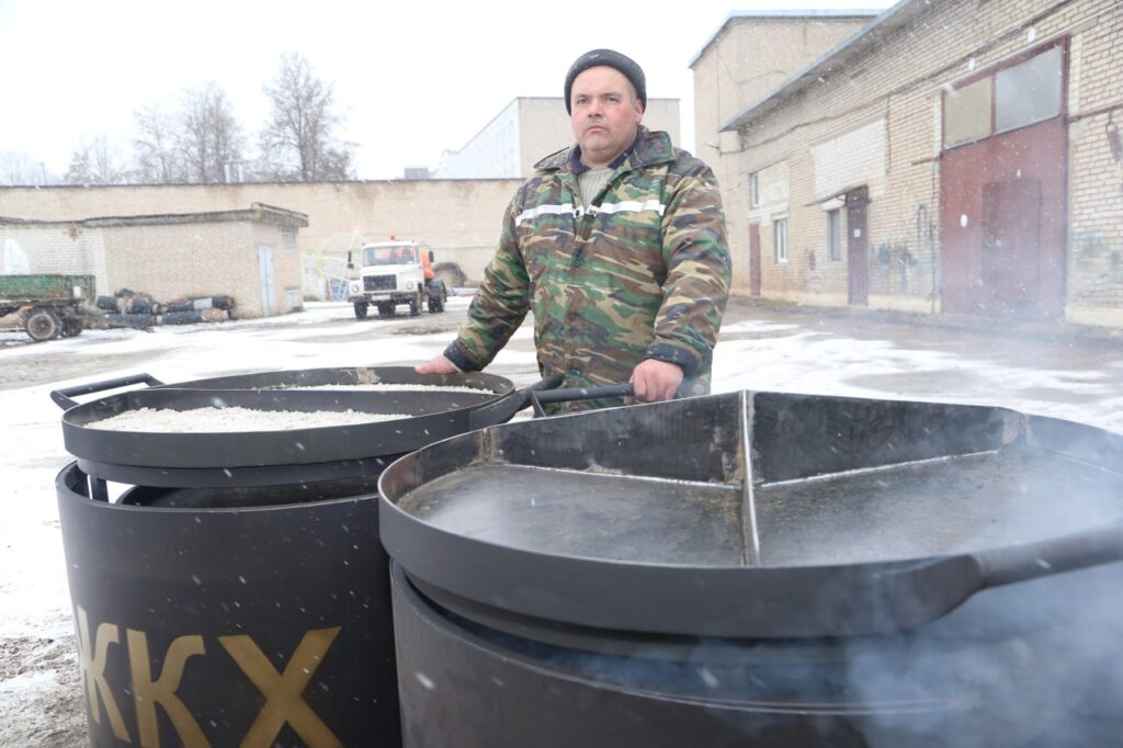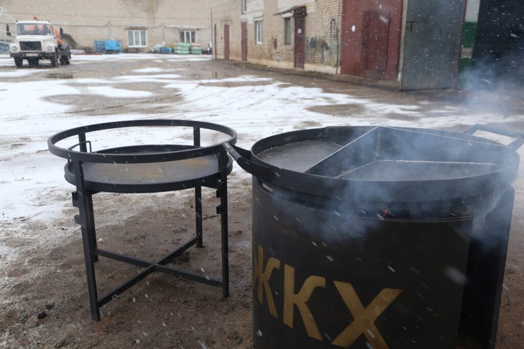 Рабочий участка «Благоустройство» коммунхоза Александр Капуза специально к Масленице изготовил огромные сковороды. Угощенья, приготовленного на них, хватит всем!