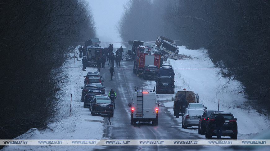 Как сообщалось, 20 февраля около 15.00 на трассе Р69 вблизи Смолевичей произошло лобовое столкновение маршрутки и груженого МАЗа. В аварии погибли 11 человек, в том числе двое несовершеннолетних (13 и 14 лет). В больницах находятся 9 человек с травмами различной степени тяжести.