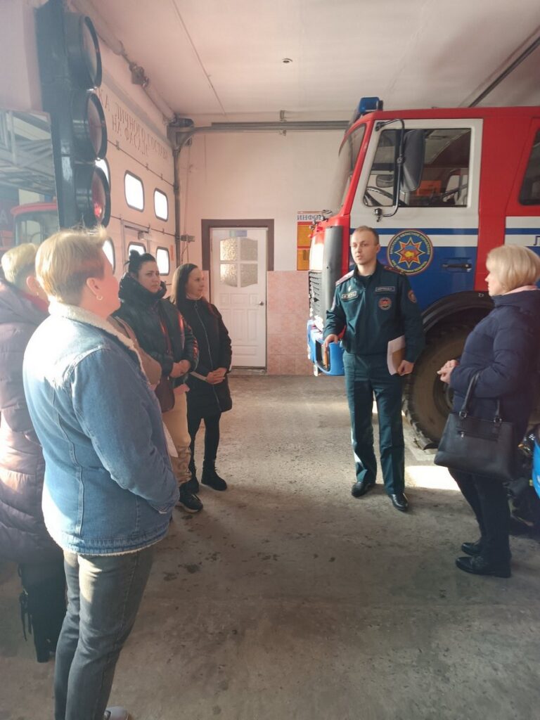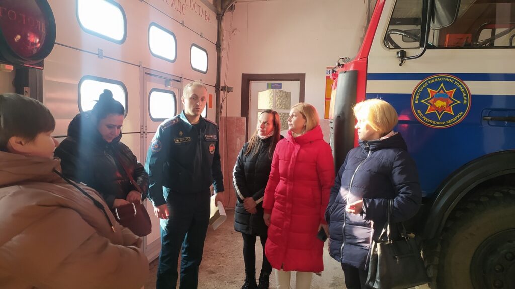 Намеснік начальніка раённага аддзела на надзвычайных сітуацыях Дзмітрый Берташ пазнаёміў з буднямі вогнеборцаў і спецыфікай іх службы, прадэманстраваў тэхніку і абсталяванне, якое выкарыстоўваецца ў прафесійнай дзейнасці.