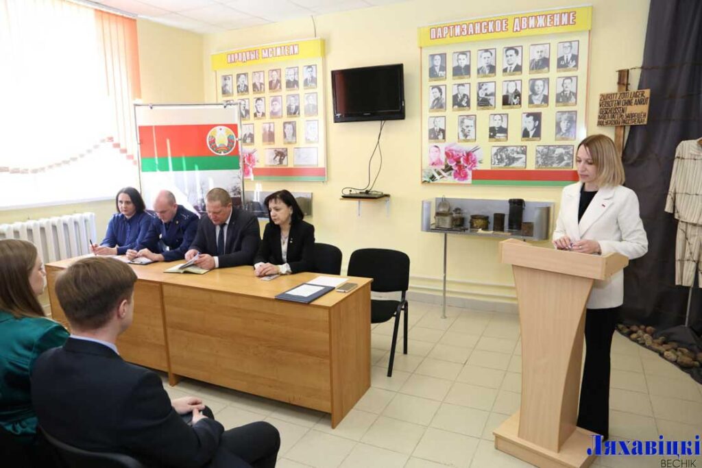 Старшыня райвыканкама Мікалай Мароз сустрэўся з педагагічным калектывам СШ № 2 у знакавым не толькі для гэтай навучальнай установы месцы – музеі баявой і працоўнай славы. Менавіта тут мінулай вясной была адкрыта і дзейнічае экспазіцыя, прысвечаная тэме генацыду беларускага народа. Шматлікія матэрыялы збіралі навучэнцы і настаўнікі, нямала экспанатаў перададзена і пракуратурай Ляхавіцкага раёна.