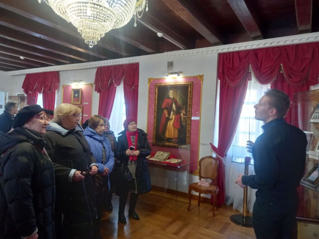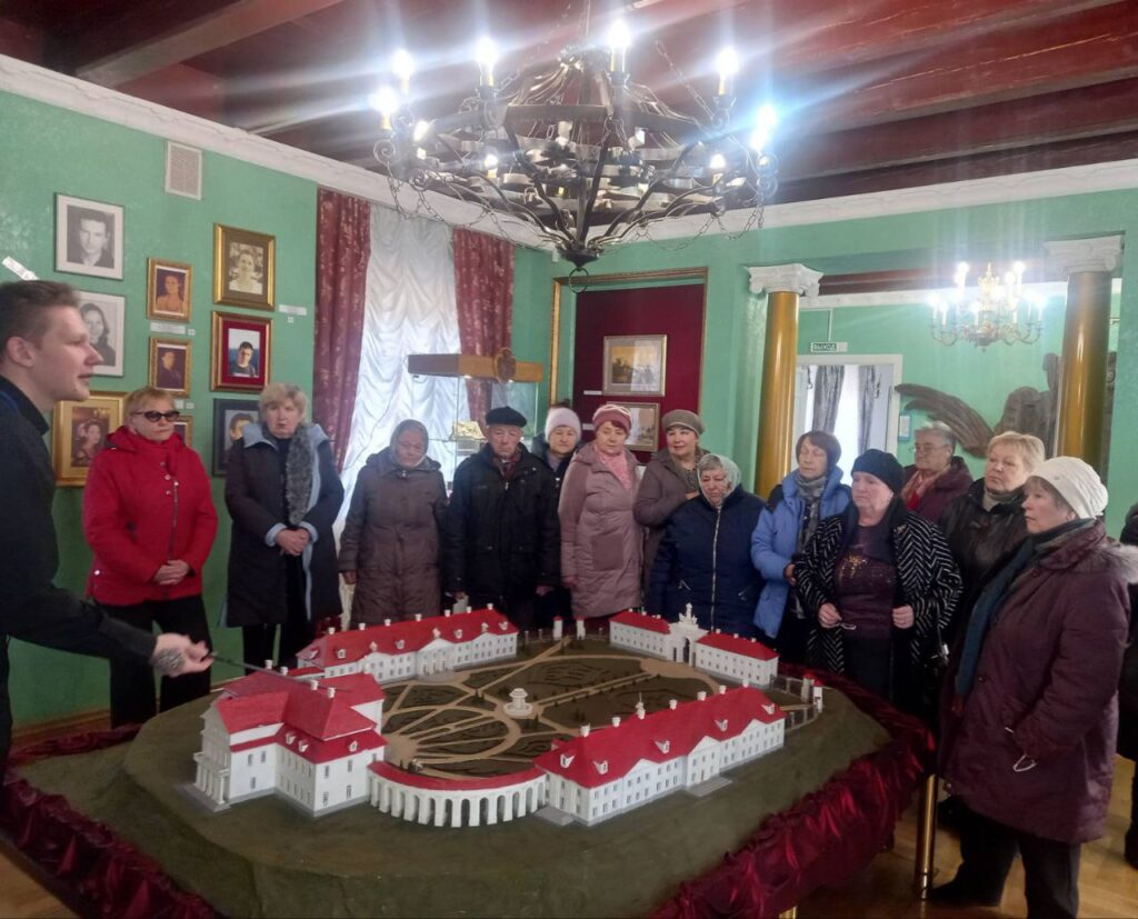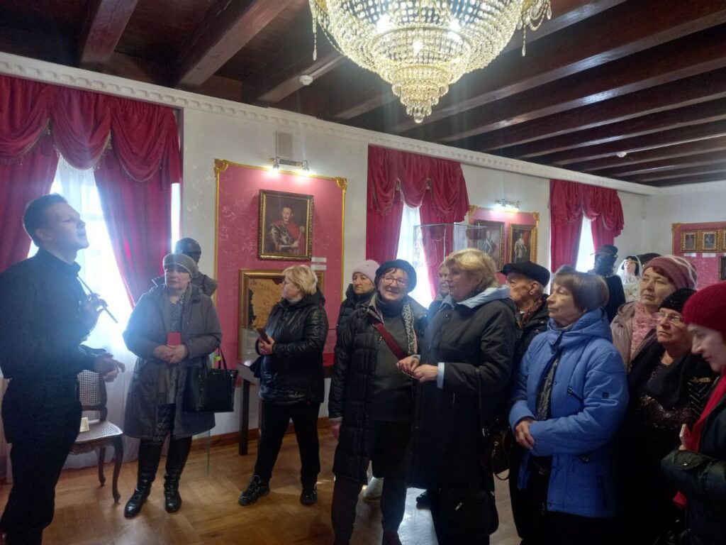 Для пожилых людей была проведена интересная, познавательная экскурсия по залам музея с различнами экспозициями, в ходе которой они узнали о разных периодах существования дворца, познакомились с историей рода Сапегов и посёлка Ружаны.