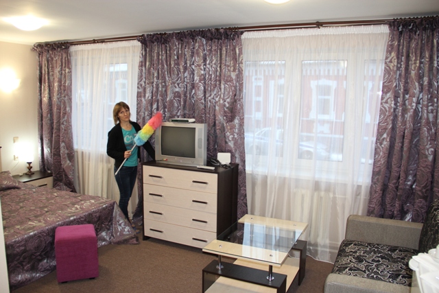 Не толькі для гасцей, у ліку якіх паспелі пабываць ужо і шматлікія замежныя грамадзяне з краін СНД і Еўропы, шмат новага з’явілася і для персаналу ўстановы. Невялікая, аднак, функцыянальная і патрэбным чынам абсталяваная гардэробная, так званы бытавы пакой укамплектаваны пральнай машынай-аўтаматам, пакой для адпачынку работнікаў гасцініцы. З улікам 12-гадзіннай працягласці змены для некаторых з іх апошняе не проста важна – першачаргова неабходна. І тут, калі ласка, мяккая мэбля, тэлевізар, электрачайнік, ЗВЧ-печ, кубкі-талеркі, іншае, каб адпачыць, адведаць чаю. Добры работнік – адпачнуўшы работнік, асабліва ў далікатнай сферы гасцінічнага бізнесу.
