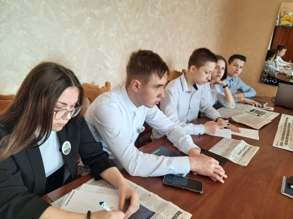Ребята обсуждают основные тезисы Послания Президента белорусскому народу и Национальному собранию🇧🇾 А также учатся размещать новости в телеграм-канале районки.