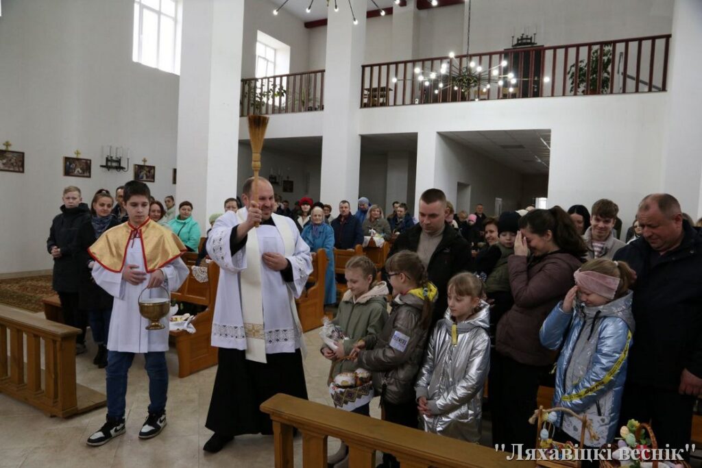 Святочна, радасна, шматлюдна ў мінулыя выхадныя было ва ўсіх каталіцкіх храмах Ляхавіччыны. Землякі, многія сем’ямі, прыходзілі, каб асвяціць галоўныя велікодныя стравы – кулічы, яйкі і іншае, што прыгатавана да святочнага стала. І паўсюдна гучала ўзвышанае, светлае і цудоўнае «Хрыстос уваскрэс!».