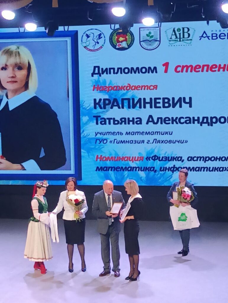 А восем канкурсантаў сталі першымі ў сваіх намінацыях. Настаўніца матэматыкі ляхавіцкай гімназіі Таццяна Крапіневіч заваявала дыплом I ступені галоўнага ўпраўлення па адукацыі Брэсцкага аблвыканкама ў намінацыі «фізіка, астраномія, матэматыка, інфарматыка».