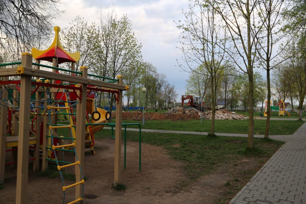У гарадскім парку адпачынку па вуліцы Дзесюкевіча гэтымі днямі працуюць камунальнікі. На гэты раз зона іх увагі — танцавальная пляцоўка, якая ў апошнія гады мела зусім непрывабны выгляд — літаральна развалілася.