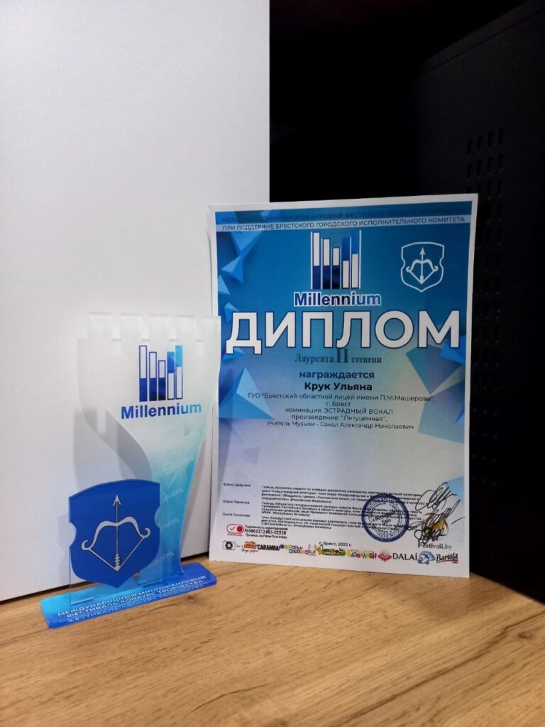 Учащаяся СШ №1 завоевала звание лауреата II степени многожанрового фестиваля -конкурса творчества «Millennium»