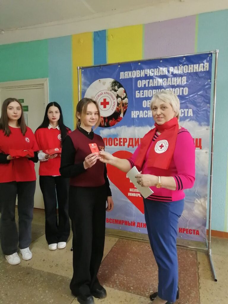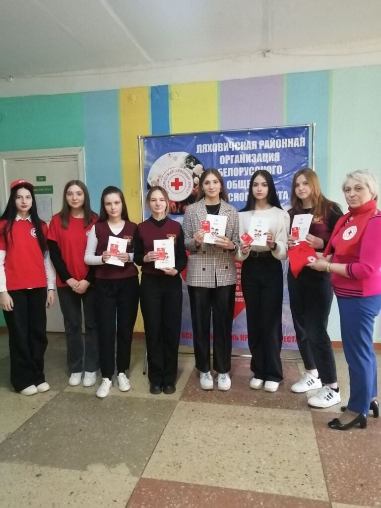 Волонтерами отряда «Поиск» ГУО «Гимназия г. Ляховичи» были проведены для учащихся информационные часы о деятельности Белорусского Красного Креста, значимости волонтерского движения в решении социальных проблем общества, распространение знаний об идеала и основополагающих принципах Красного Креста и Красного Полумесяца, об истории Красного Креста.