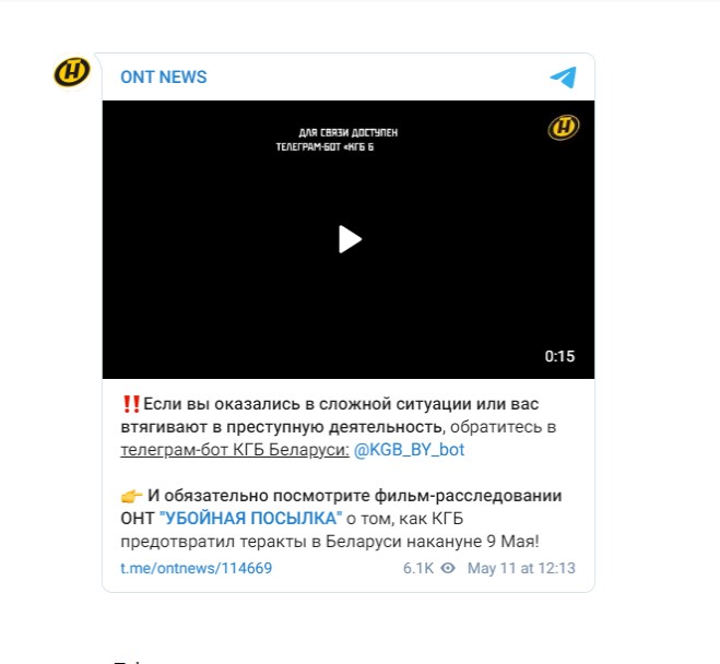 Если вы оказались в сложной ситуации или вас втягивают в преступную деятельность, обратитесь в Telegram-бот Комитета государственной безопасности Республики Беларусь: @KGB_BY_bot