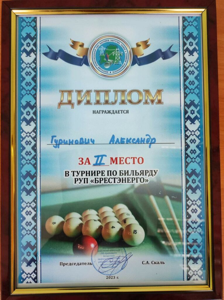 Приятно, что выступая за команду филиала «Барановичские электрические сети», второе место на турнире занял мастер Ляховичского РЭС Александр Гуринович.