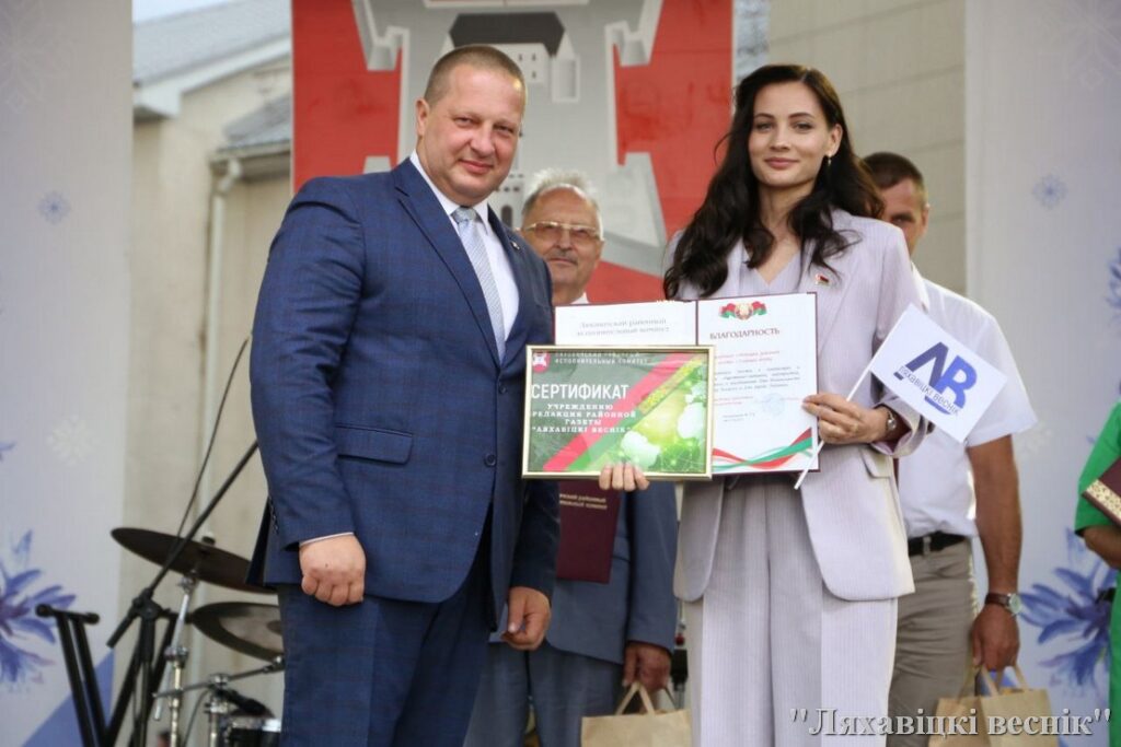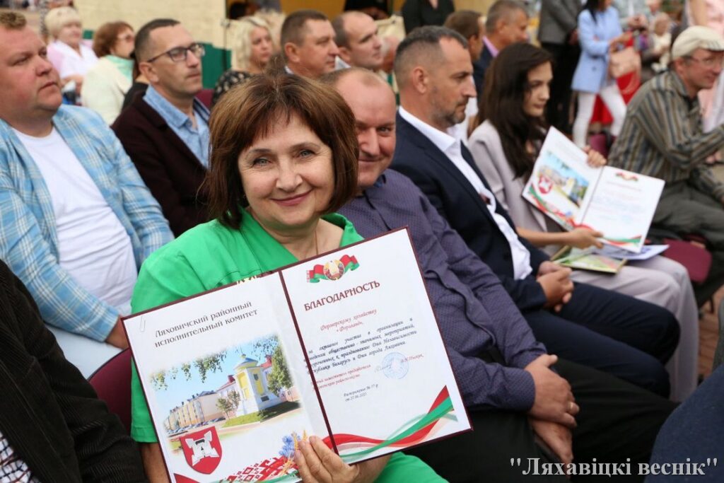 Падзяка старшыні Ляхавіцкага раённага выканаўчага камітэта з уручэннем каштоўнага падарунка за актыўны ўдзел у арганізацыі і правядзенні грамадска-значных мерапрыемстваў, прымеркаваных да святкавання Дня Незалежнасці Рэспублікі Беларусь і Дня горада Ляхавічы, аб’яўлена: