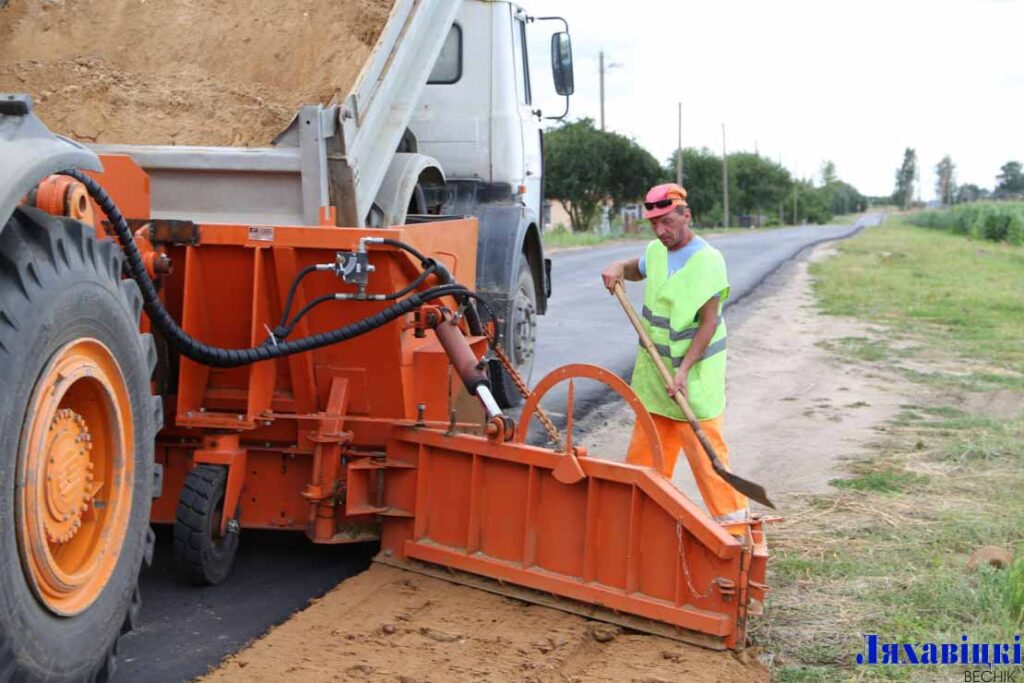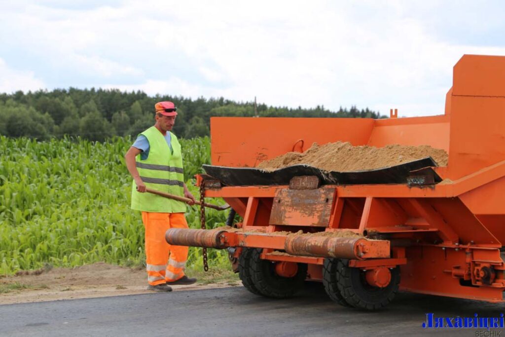 – На дарожным адрэзку ад Р4 да пляцоўкі будучай МТФ выкананы бягучы рамонт. Пакладзена два слаі асфальтабетоннага пакрыцця – выраўноўваючы і верхні. Сёння прыступілі да работ па ўладкаванні пясчана-гравійнай сумессю ўзбочын. Матэрыял для адсыпкі возім з кар’ера, не так даўно адкрытага непадалёку ад аграгарадка Навасёлкі. Для ажыццяўлення работ задзейнічана спецыяльная машына «Дэльта» і, упэўнены, самае позняе заўтра яны будуць завершаны, – растлумачыў «літоўскую» дарожную сітуацыю майстар ДРБУ-200 Яўгеній Расюк.