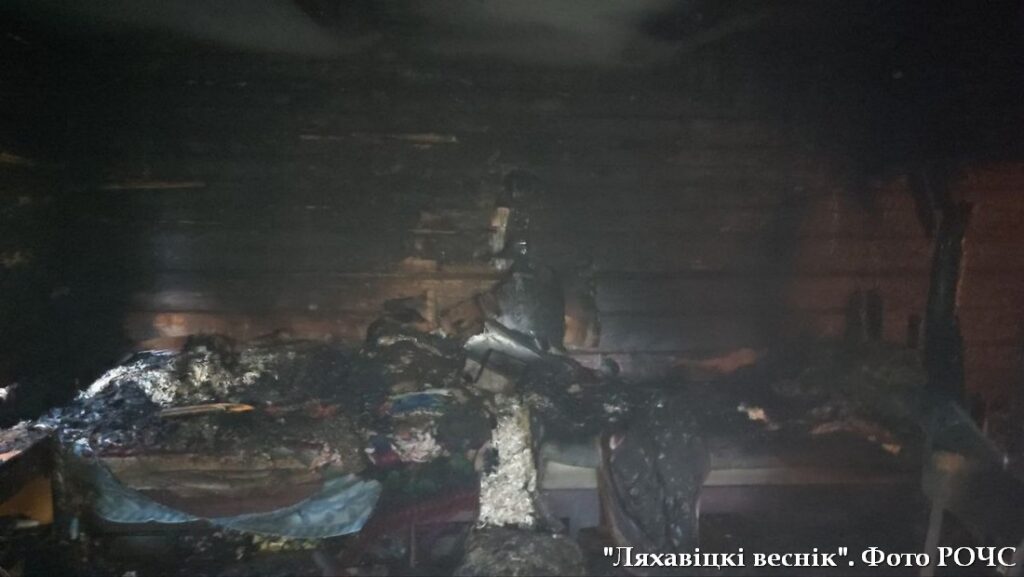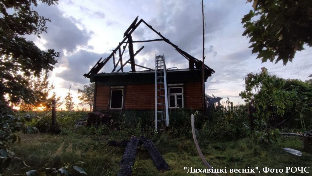 По прибытии к месту вызова спасателей Ляховичского РОЧС установлено, что происходит открытое горение кровли деревянного дома, хозяева, пенсионеры 1949 и 1953 годов рождения, находятся на улице.