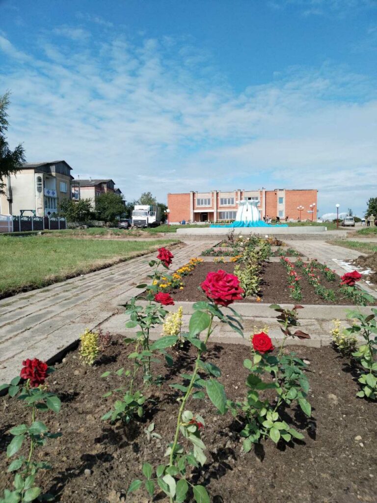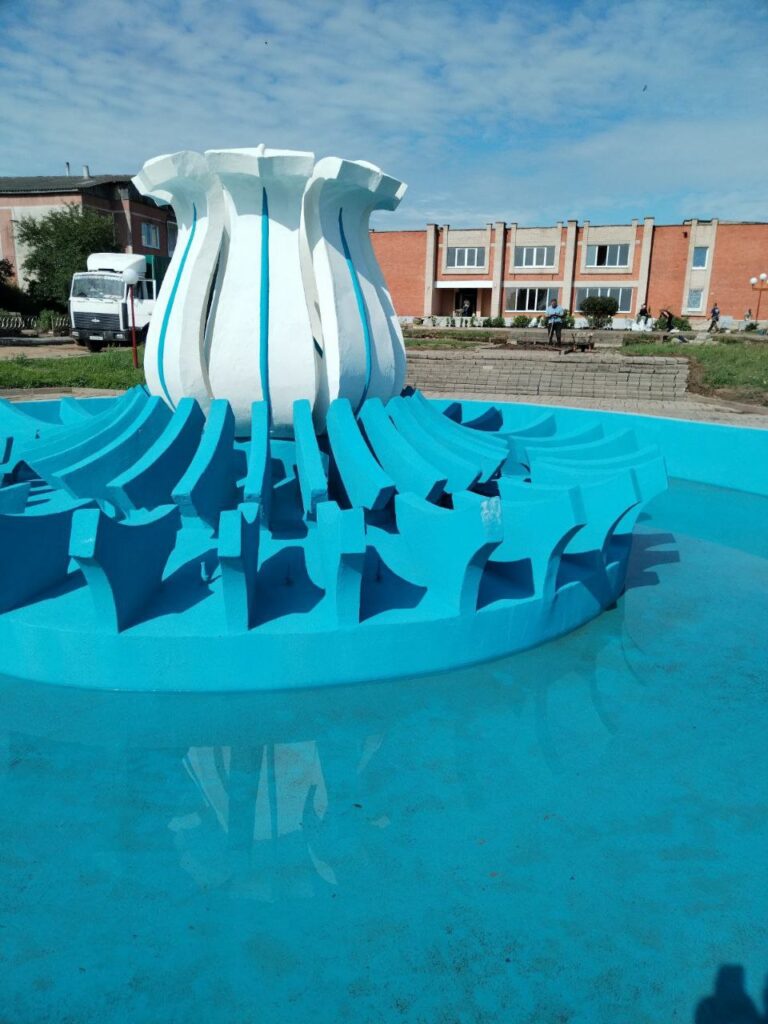 Возле местного СДК переложена плитка. А несколько дней назад впервые за долгие годы запустили после ремонта фонтан.