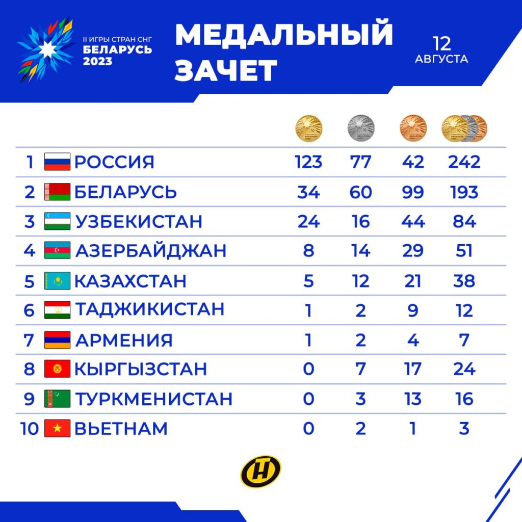Грамадства Спорт Белорусские спортсмены в восьмой день розыгрыша наград на II Играх стран СНГ завоевали 32 медали 12/08/2023 114 redakcyja ОНТ