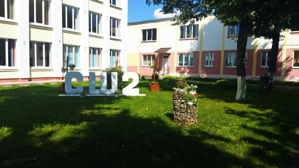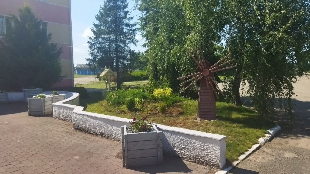 З першых крокаў па тэрыторыі гімназіі (фота 1) адчуваецца суцэльны творчы падыход. Каля кожнага аб’екта хочацца спыніцца і любавацца ўбачаным. Дзіву даешся, як можна так віртуозна выразаць геаметрычныя фігуры з зялёных насаджэнняў ці падабраць каляровую гаму для шматлікіх кветнікаў.