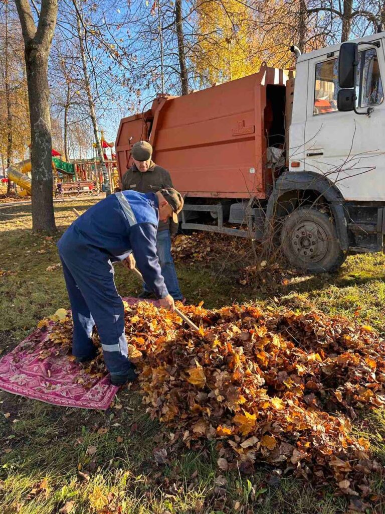Кипит осенняя работа в городском парке по улице Десюкевича