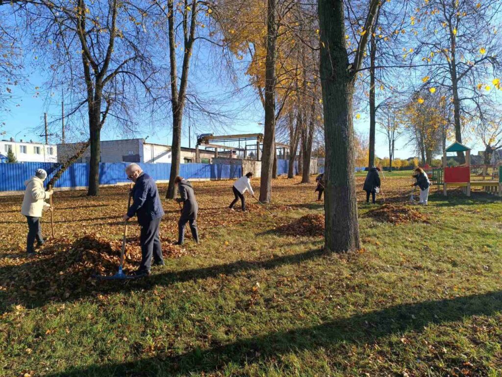 Кипит осенняя работа в городском парке по улице Десюкевича в Ляховичах