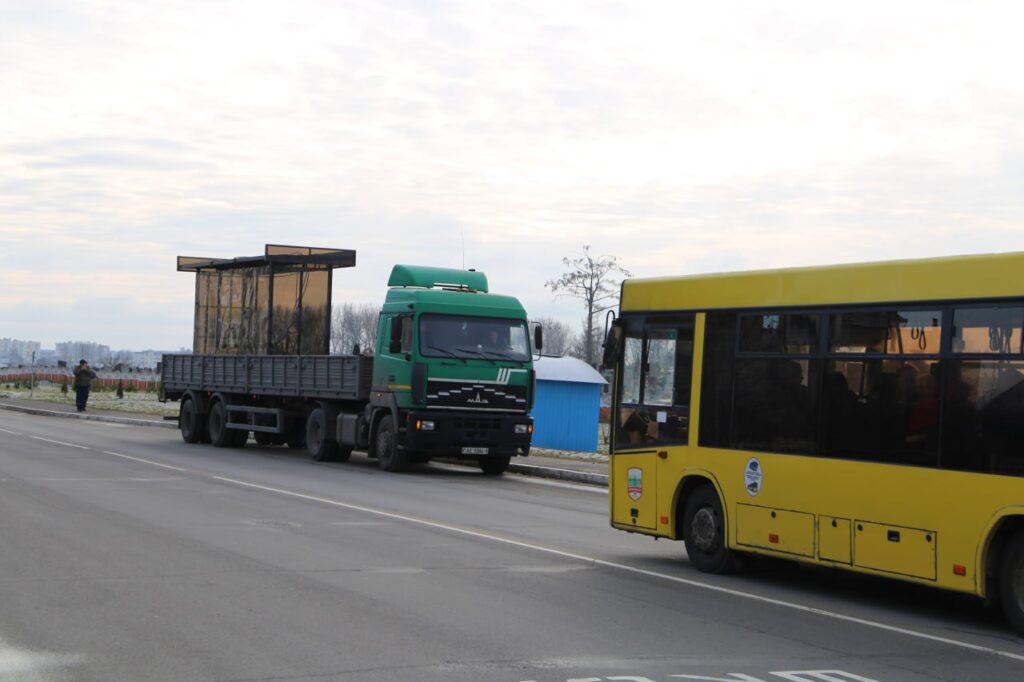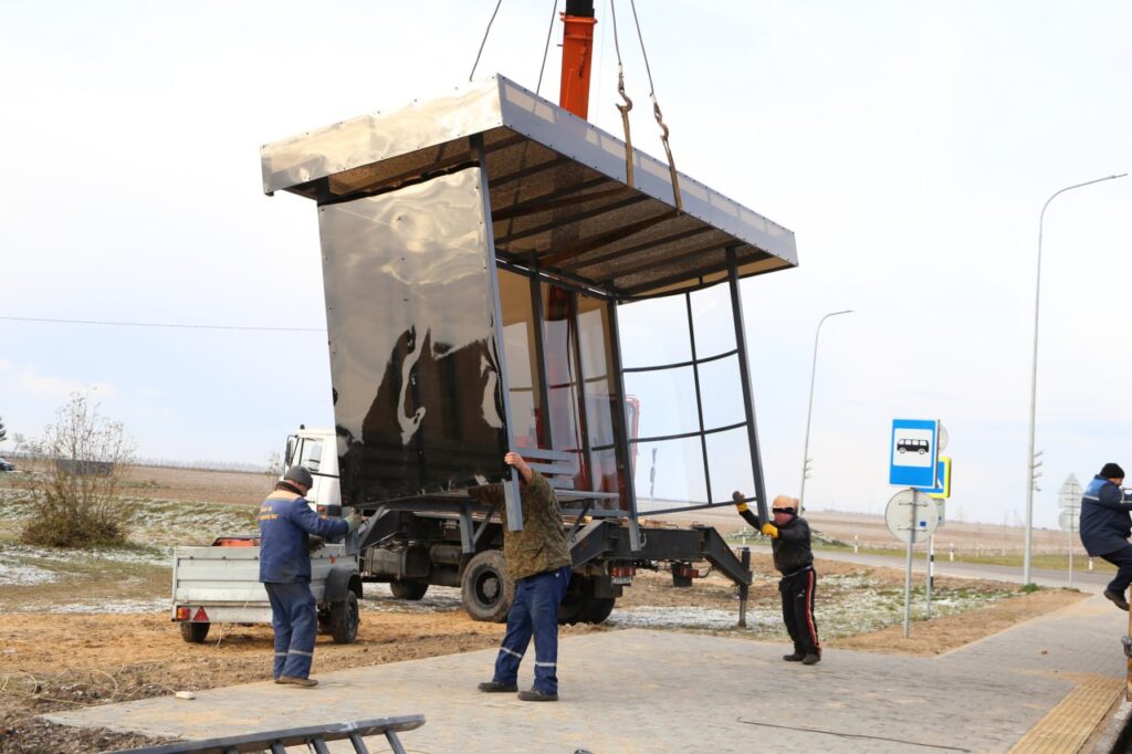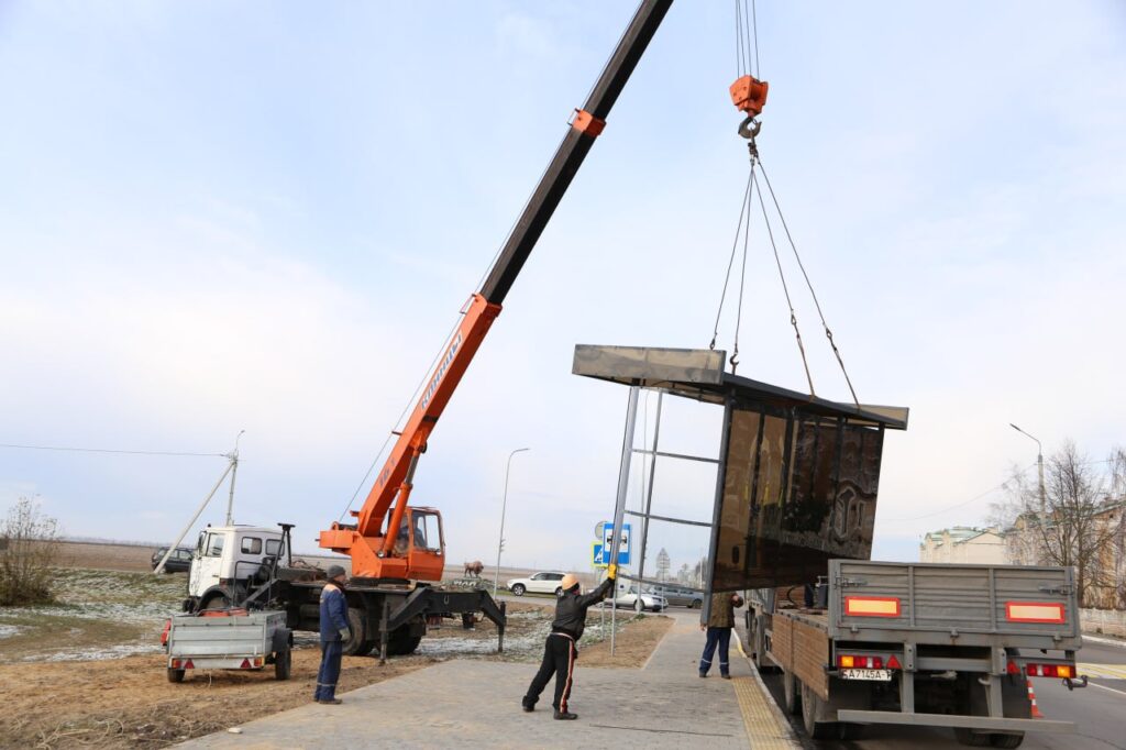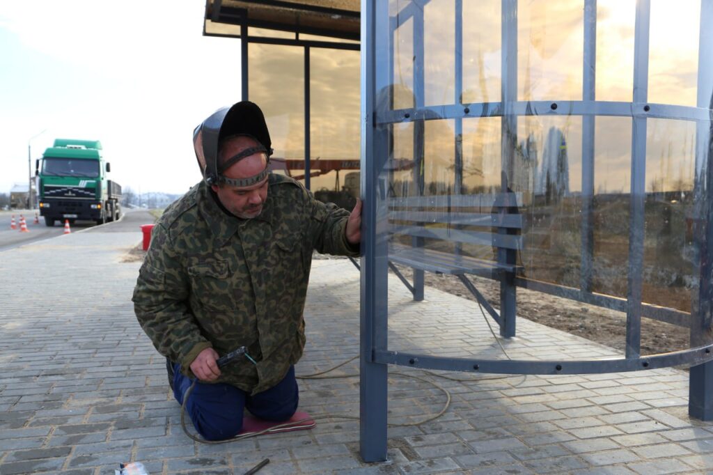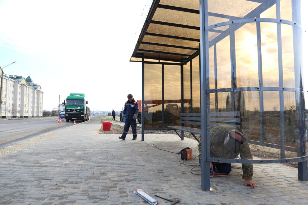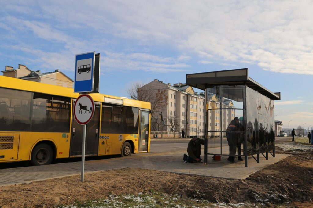 Новый павильон установлен на остановке напротив гимназии. Кроме замены павильона, благоустройство автобусной остановки предусматривало укладку тротуарной плитки.