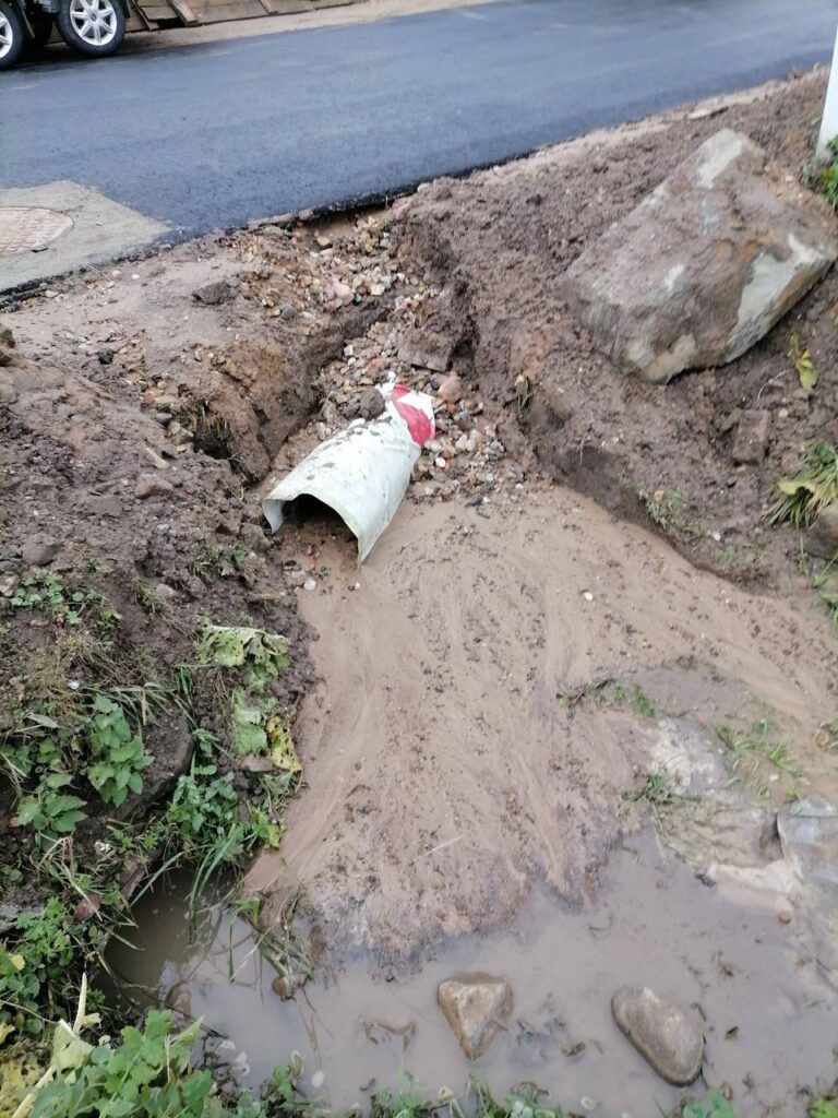 Начиная с улицы Каштановой, идет уклон в сторону реки Ведьма. Чтобы вода беспрепятственно уходила с земельных участков, жители оборудовали водоотводящие канавы по своим земельным участкам. Эти канавы связаны между собой трубой, проходящей под дорожным покрытием на улице Солнечной (на фото). Один з участков водоотводящей трубы утратил свою пропускную способность. Это и послужило растеканию поверхностных вод на земли, расположенные рядом, – отметила Марина Завадская.