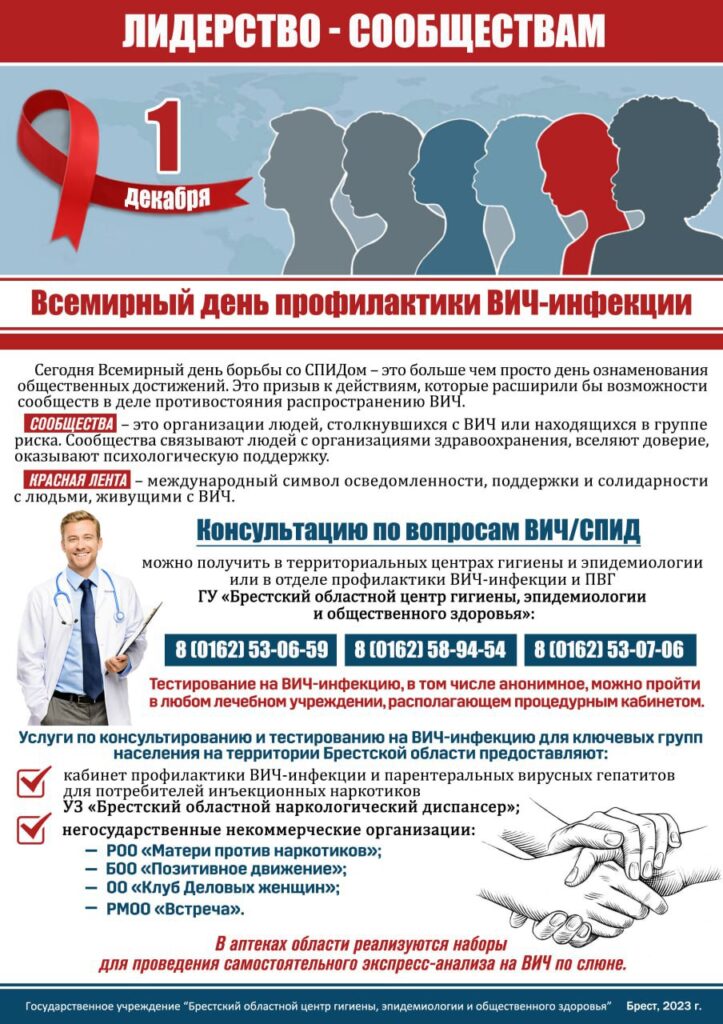 Штогод, у адпаведнасці з рашэннем Сусветнай арганізацыі аховы здароўя (СААЗ) і Генеральнай Асамблеі ААН, прынятым у снежні 1988 года, 1 снежня адзначаецца Сусветны дзень барацьбы са СНІДам.