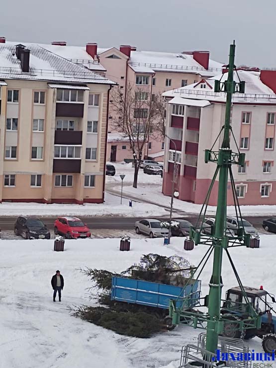 Фотофакт. В Ляховичах устанавливают ёлку