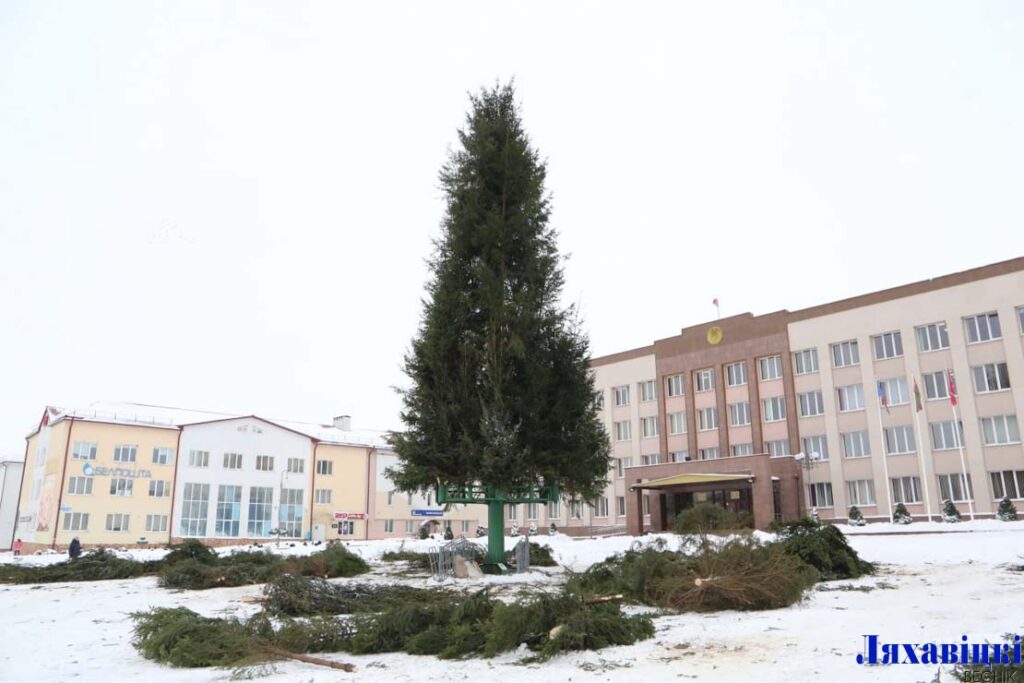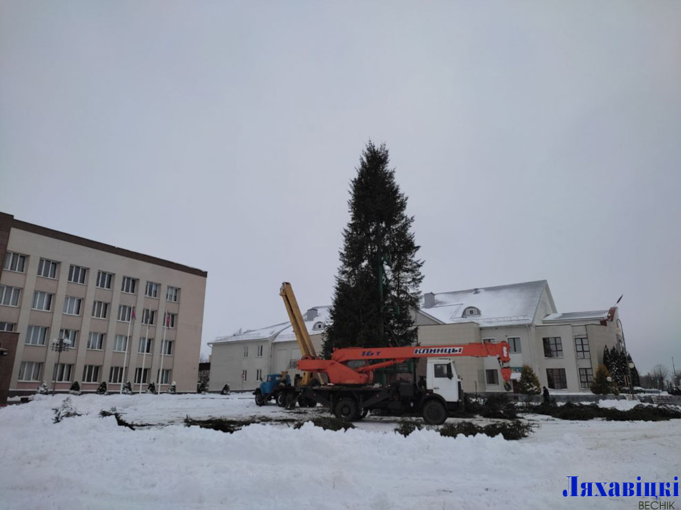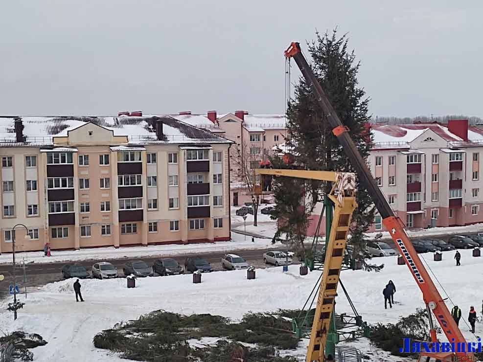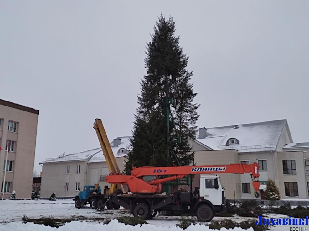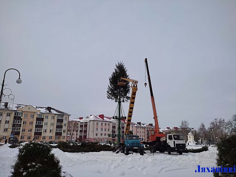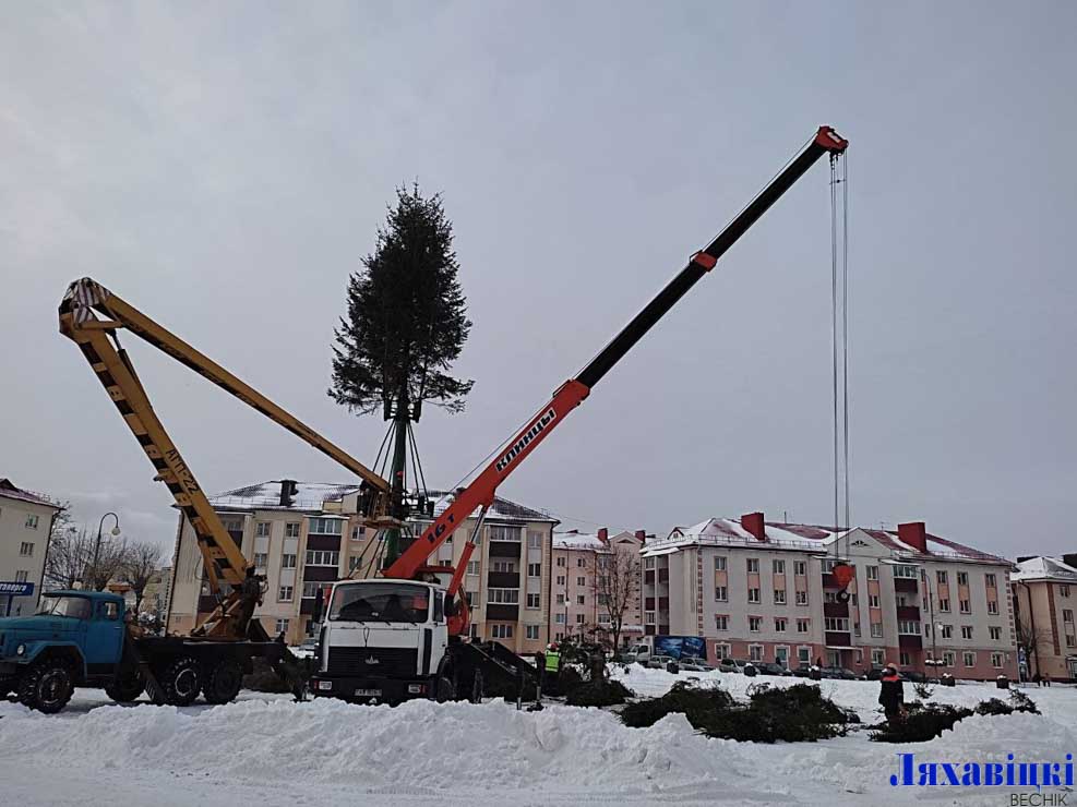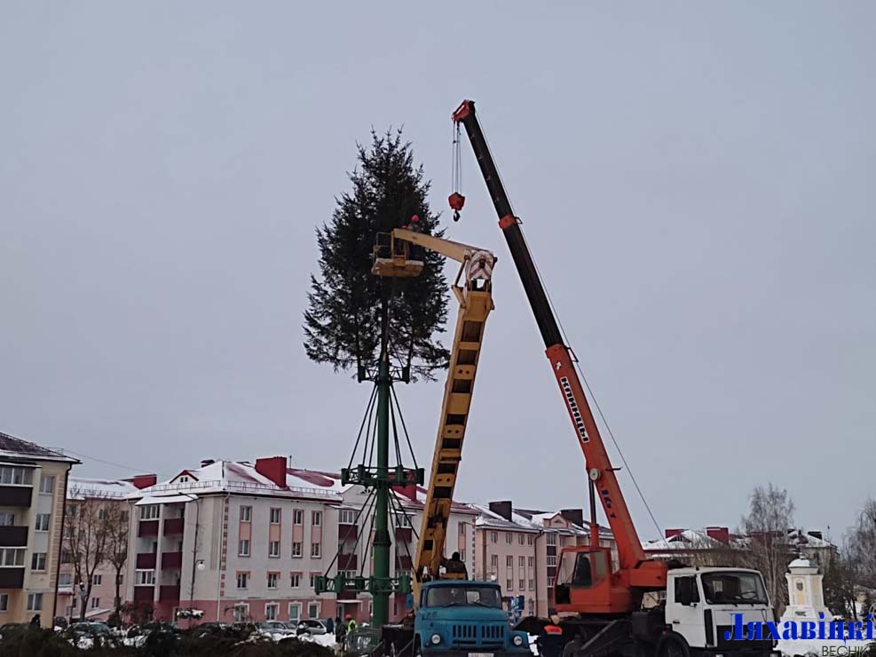 Фотофакт. В Ляховичах устанавливают главную ёлку района
