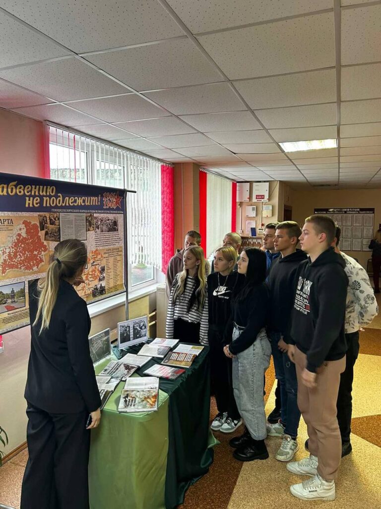Учащиеся получили важную и актуальную информацию о жертвах геноцида на территории Брестской области, ознакомились с содержанием выставки, посвящённой геноциду белорусского народа «Помнить вечно. Забыть невозможно!».