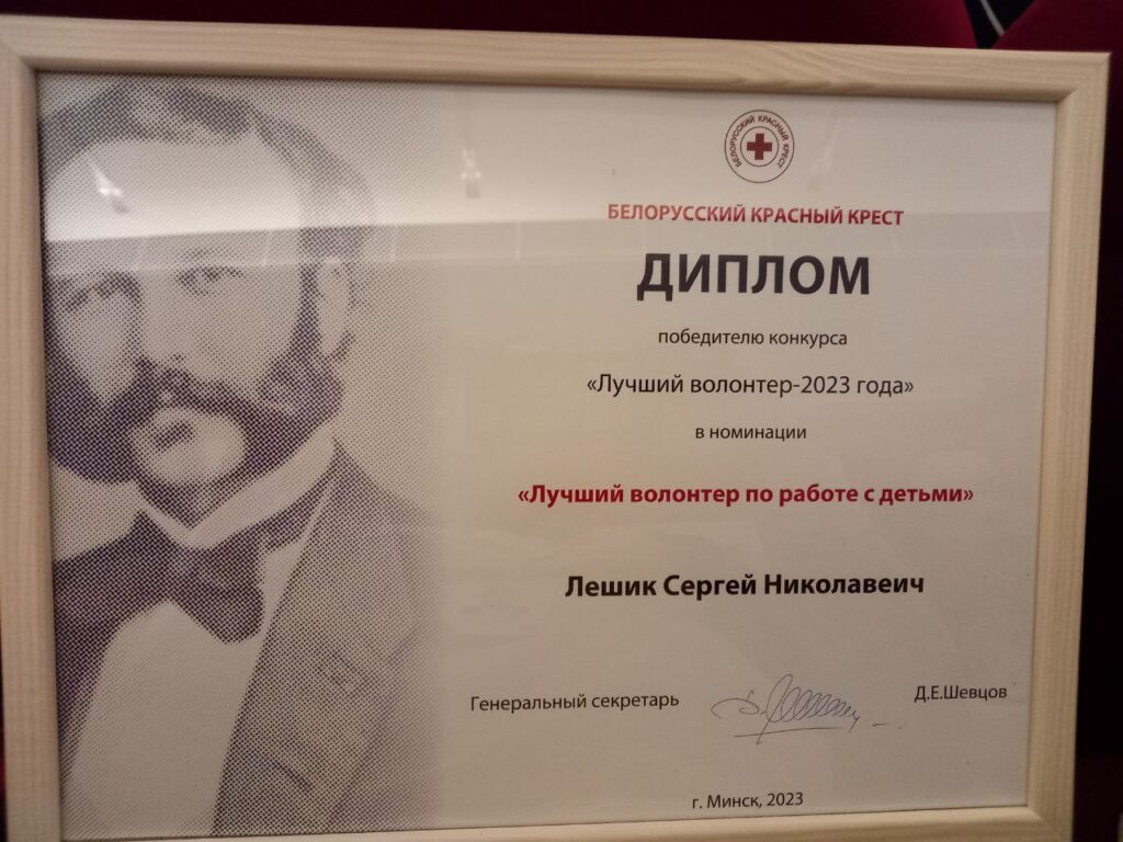 5 декабря в Минске состоялось торжественное мероприятие, на котором были названы лучшие волонтёры Белорусского общества Красного Креста по итогам 2023 года. Среди них и наш земляк — волонтер Брестской областной организации, учитель химии и биологии, руководитель по военно-патриотическому воспитанию Малогородищенской СШ Сергей Лешик. Сергей стал победителем в номинации «Лучший волонтер по работе с детьми» .