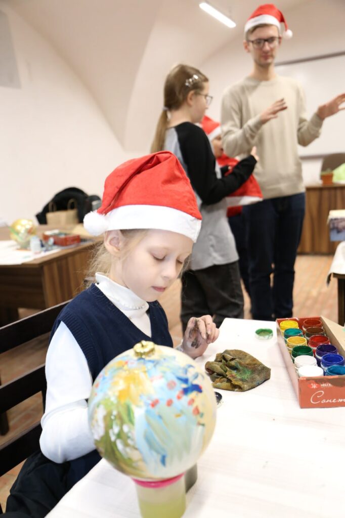 А вчера и сегодня там проходят мастер-классы по росписи ёлочной игрушки.