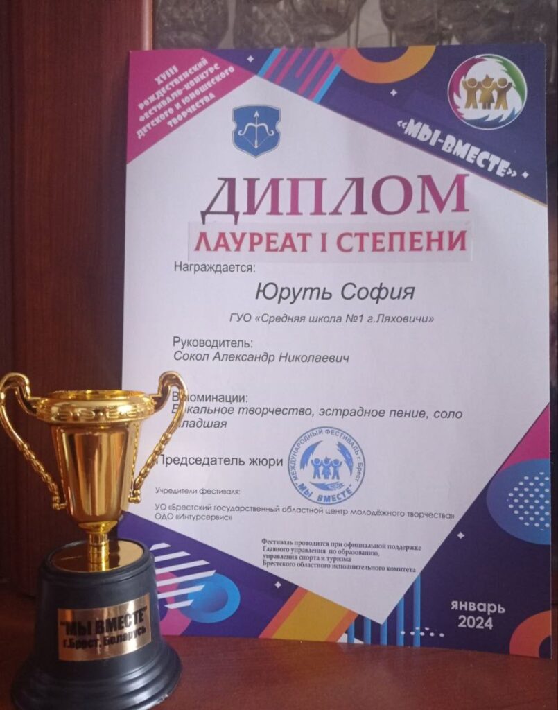 Юные ляховичане отмечены наградами на VIII республиканском рождественском фестивале-конкурсе детского и юношеского творчества «Мы — вместе» в номинации «вокальное творчество, эстрадное пение».