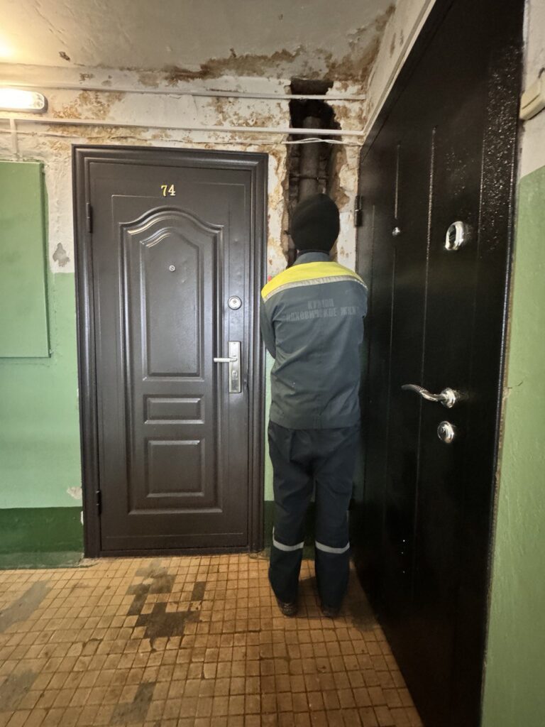 Як адзначалася, супрацоўнікі камунгаса пэўны час не рэагавалі на сітуацыю. «ЛВ» высветліў падрабязнасці. А праблема ёсць, і сур’ёзная – з пятага паверха з даху па лесвічнай клетцы працякае, на плітцы ствараюцца лужыны. Сёння па адрасе працавалі работнікі аварыйна-тэхнічнай службы КУМВП ЖКГ «Ляхавіцкая ЖКГ».