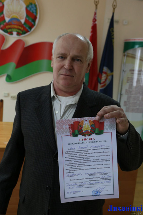 13 февраля в Ляховичском РОВД состоялась церемония принесения Присяги гражданина Республики Беларусь. Ляховичанин Валерий Пищ сменил литовское гражданство на белорусское.