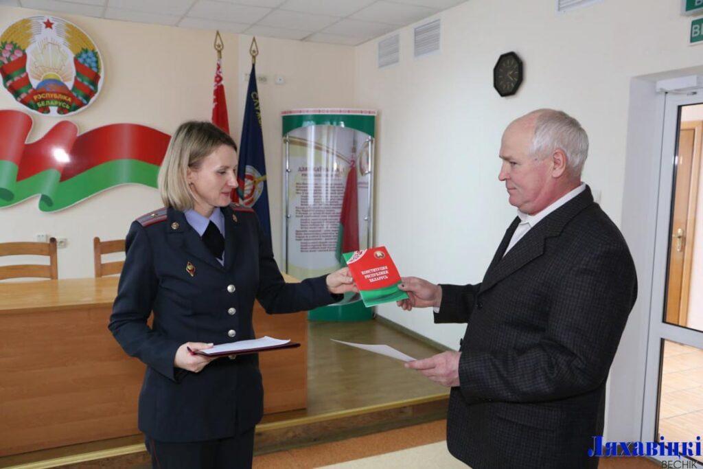 13 февраля в торжественной обстановке начальник ОГИМ Ляховичского РОВД Валентина Бабич поздравила Валерия Пища со знаменательным событием в его жизни и вручила ему Конституцию Республики Беларусь.
