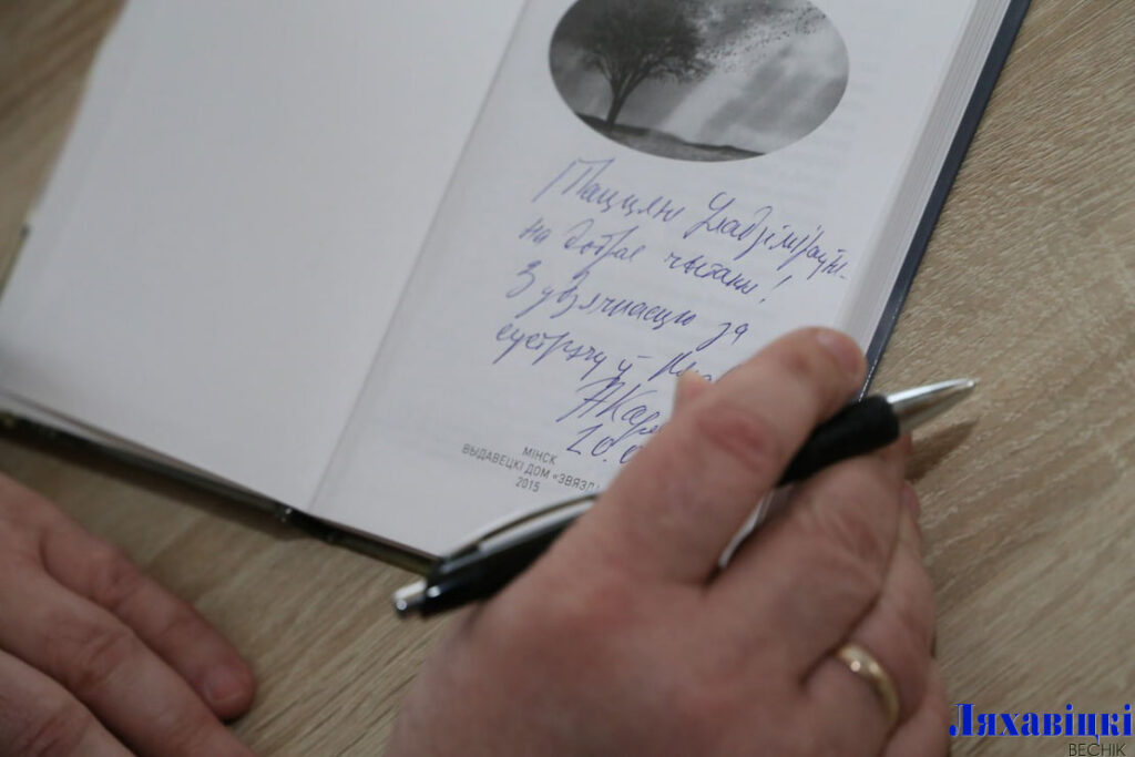 «ЛВ» паведамляў ужо, што старшыня Саюза пісьменнікаў́ Беларусі і дырэктар — галоўны рэдактар выдавецкага дома «Звязда» Аляксандр Карлюкевіч сустрэўся з ляхавіцкімі гімназістамі. Але гэта была не адзіная творчая сустрэча ў нашым райцэнтры.