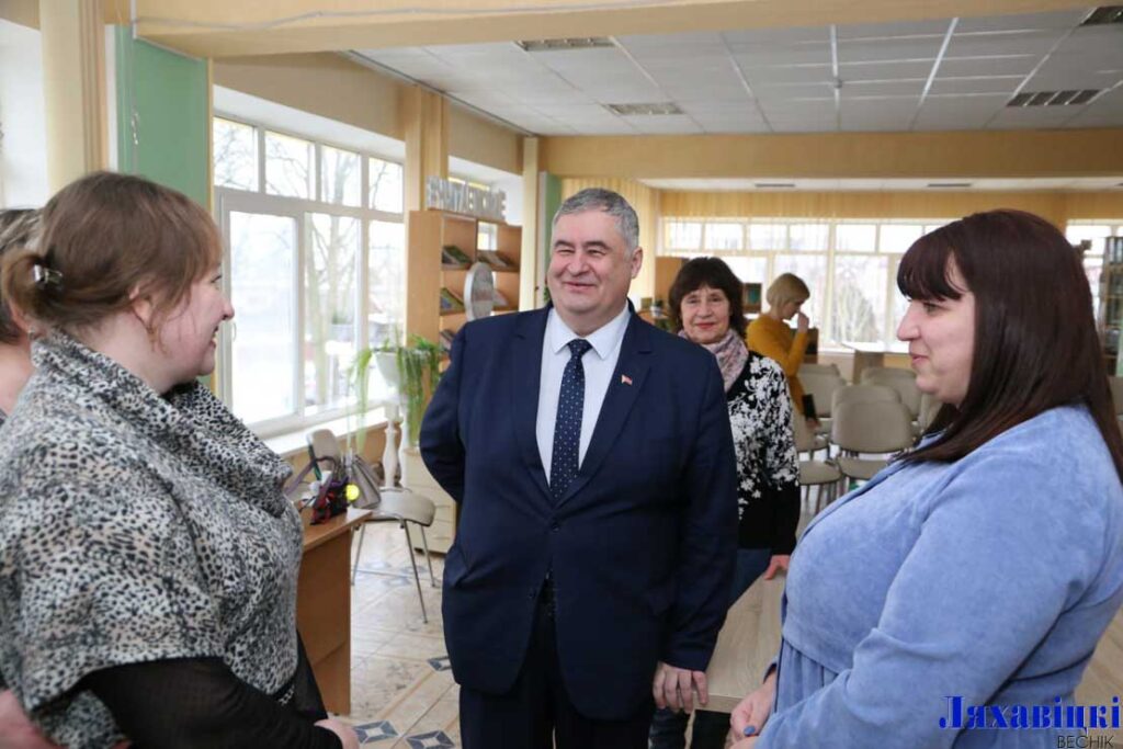 Аляксандр Мікалаевіч пабываў у ляхавіцкай купалаўцы, сардэчна паразмаўляў з калектывам раённай цэнтралізаванай бібліятэчнай сістэмы і проста аматарамі кнігі.