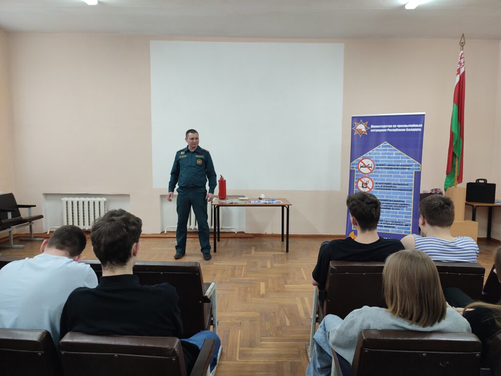 В Ляховичском районе завершилась республиканская акция «Безопасность в каждый дом!». Работники Ляховичского районного отдела по чрезвычайным ситуациям провели мероприятие в общежитии с учащимися ОСП «Ляховичский государственный аграрный колледж» БарГУ. Заместитель начальника Ляховичского районного отдела по чрезвычайным ситуациям Кирилл Красовский привел присутствующим ситуационные задачи, какие действия могут привести к чрезвычайной ситуации в общежитии и что делать при их возникновения, рассказал о недопустимости курения в общежитии, оставление электроприборов без присмотра. Кирилл Владимирович напомнил собравшимся номера телефонов службы спасения, и показал, как проверить исправность автономного пожарного извещателя, разъяснив принцип его работы.