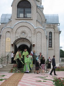 Круг вакол храма пад гукі звона, і хрэсны ход узяў накірунак у цэнтр вёскі-аграгарадка, дзе ў брацкай магіле пакояцца воіны, што загінулі ў барацьбе за вызваленне вёскі ад фашызму. Вянкі ляглі да падножжа помніка, адбыўся мітынг “Памяць сэрца”.