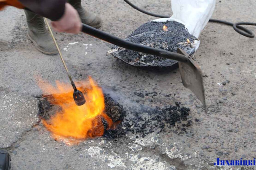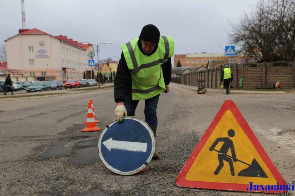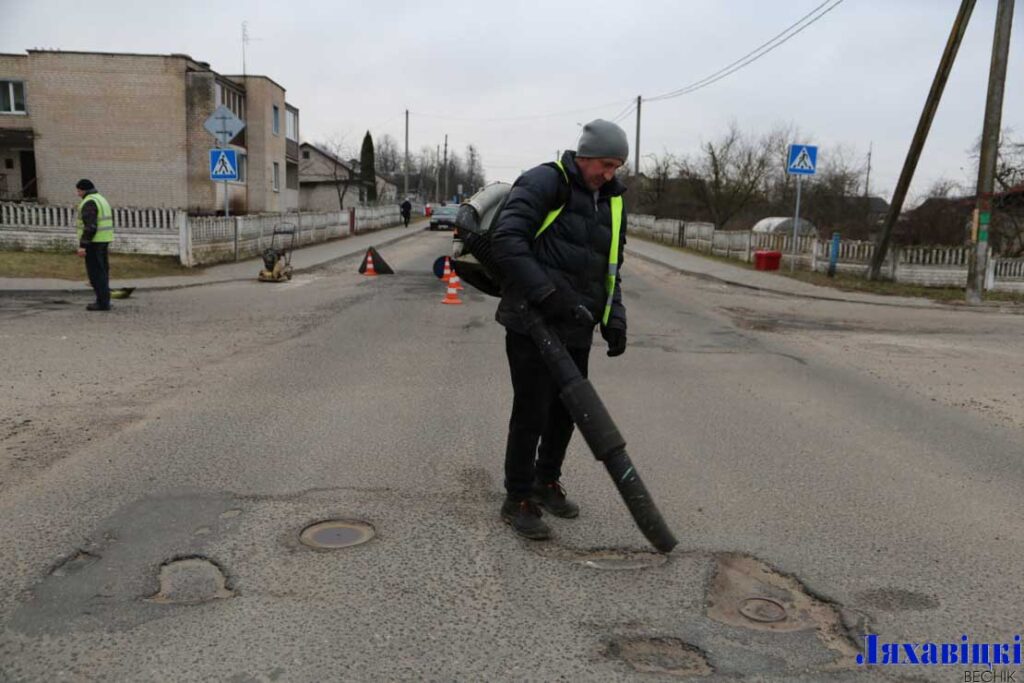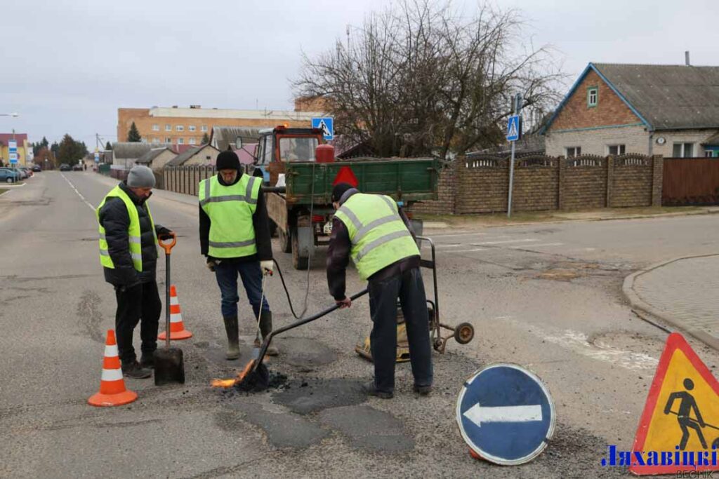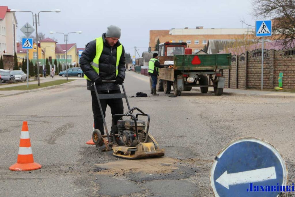 ФОТОФАКТ. Ляховичский коммунхоз проводит ямочный ремонт в райцентре