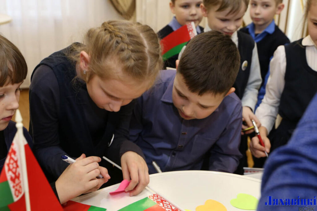Первыми посетителями стали учащиеся 3 «А» класса СШ №1, для которых начальник отдела загса Ольга Новик и библиотекарь районной детской библиотеки Елена Чеботаренко провели информационный час «По страницам Основного Закона».
