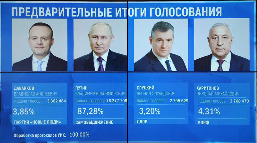 Как отметили в ЦИК, явка на выборах главы государства составила рекордные 77,44%. Официальные итоги выборов ЦИК подведет на специальном заседании 21 марта.-