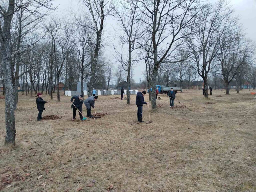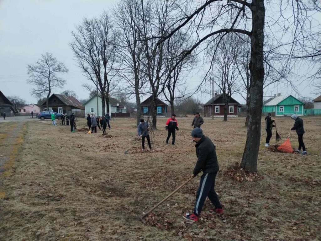 Утро 20 марта в д. Кривошин Ляховичского района началось с субботника в парке