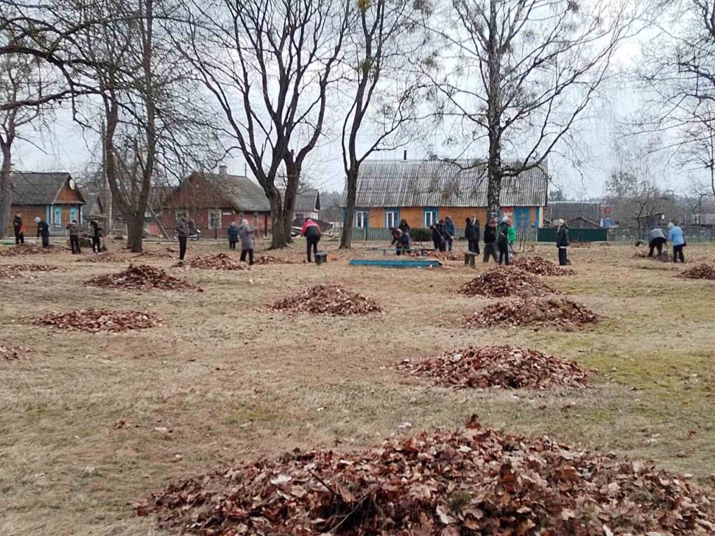 На уборку листьев вышли работники Кривошинской СШ, Кривошинского психоневрологического дома-интерната для престарелых и инвалидов, Кривошинского сельисполкома.