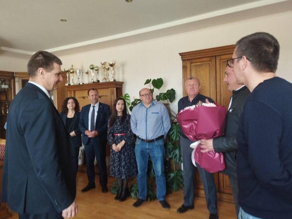 От имени районной власти с поздравлениями Грамоту райисполкома юбиляру вручил первый заместитель председателя Пыжик В.Н., Почётную грамоту Ляховичского районного агросоюза — его председатель Вощук А.Н, грамоту районной профсоюзной организации работников АПК — председатель районного объединения профсоюзов Прокопьюк Т.В.