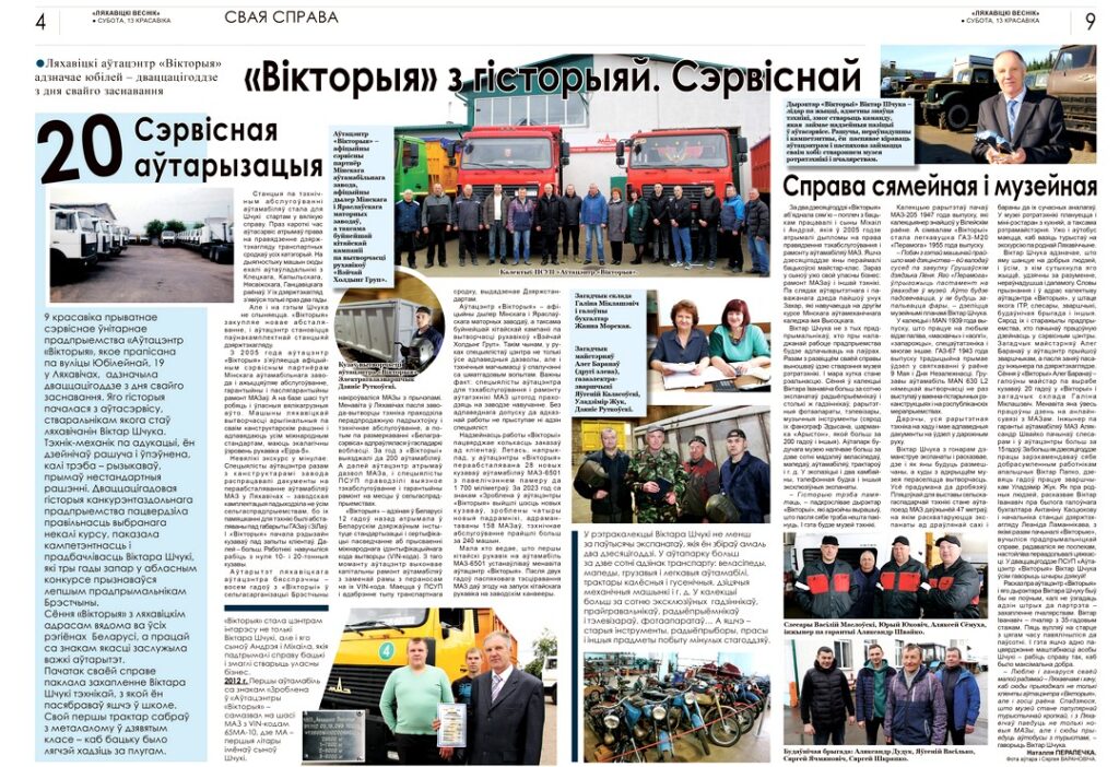 «Вікторыя» з гісторыяй. Сэрвіснай. Ляхавіцкі аўтацэнтр «Вікторыя» адзначае юбілей – дваццацігоддзе з дня свайго заснавання