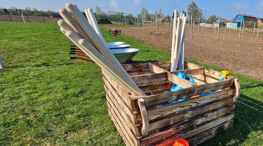 Всего плодовый сад будет состоять из 411 яблоневых деревьев. Уже посажено 186 деревьев (93 — сорт яблони «Белорусское сладкое» и 93 — сорт яблони «Сябрына»).