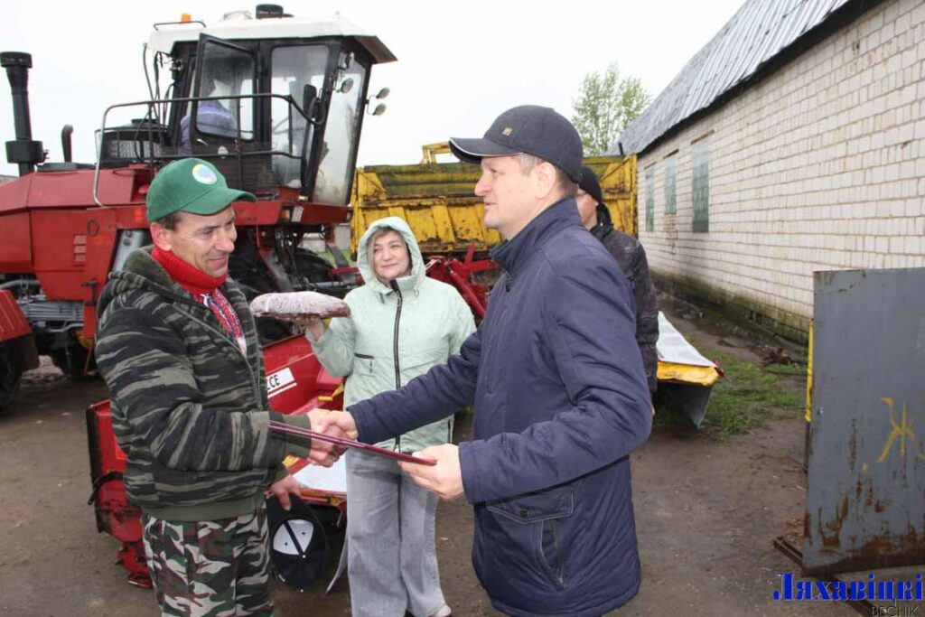 Первый заместитель председателя райисполкома – начальник райсельхозпрода Василий Пыжик и председатель районной организации профсоюза работников АПК Ирина Чура сегодня поздравили и наградили лучших механизаторов по итогам сева ранних яровых культур.